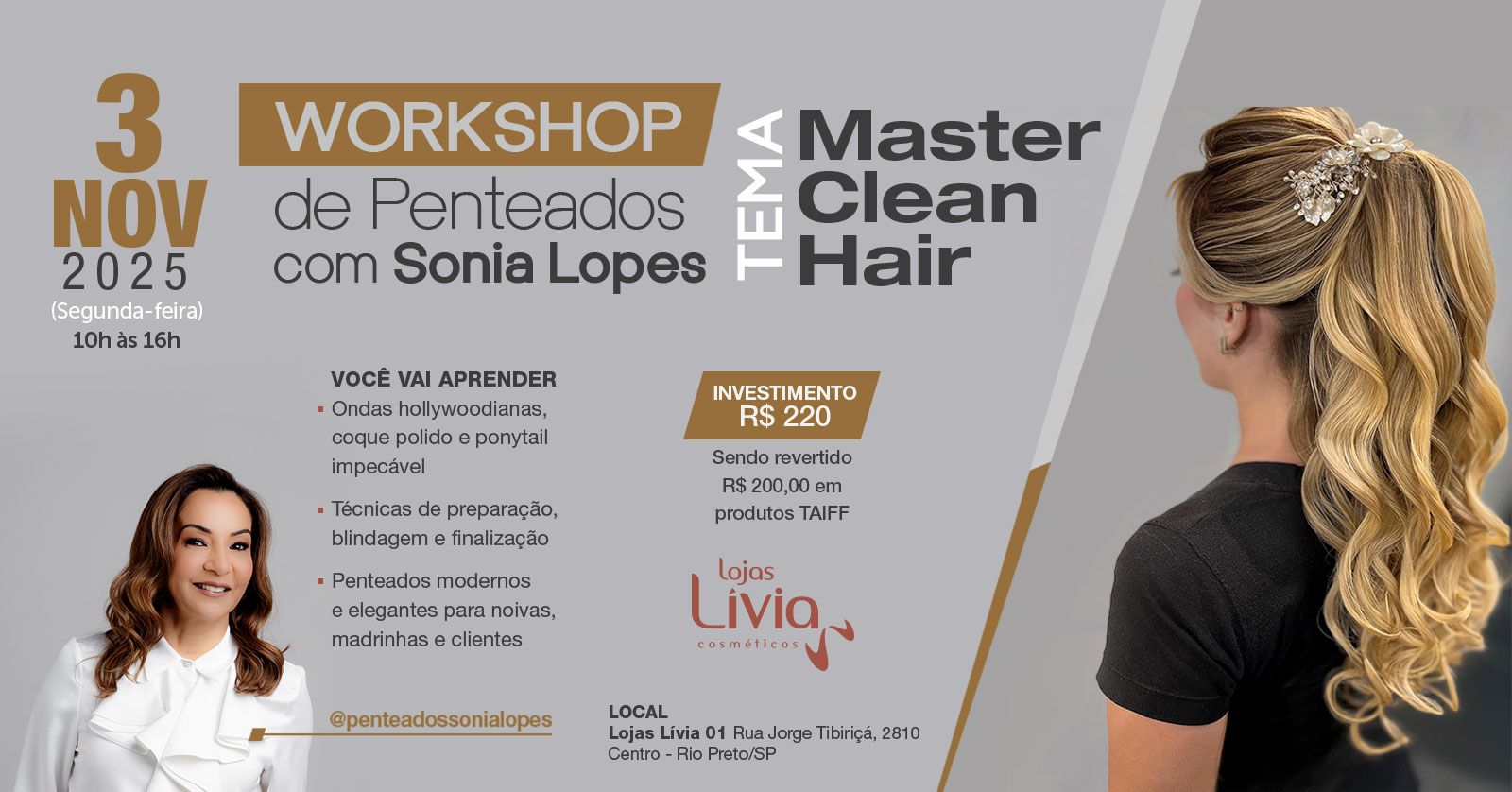 Você vai aprender: - Ondas hollywoodianas, coque polido e ponytail impecável - Técnicas de preparação, blindagem e finalização - Penteados modernos e elegantes para noivas, madrinhas e clientes Venha ampliar seus conhecimentos e ficar por dentro das tendências de penteados com Sonia Lopes.
