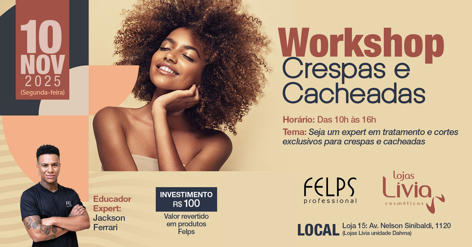O EVENTO QUE VOCÊ, CABELEIREIRO OU CABELEIREIRA, NÃO PODE PERDER! Um período inteiro de muito conhecimento, conteúdo e técnicas avançadas em corte finalização em cabelo crespo ou cacheado, compartilhadas pelo cabeleireiro e educador expert da FELPS, JACKSON FERRARI.